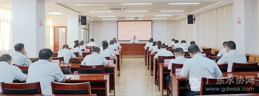 7月26日,韶关市水投集团召开党委扩大会议,专题学习广东省委书记李希在韶调研指示精神,韶关市水投集团党委书记胡列峰主持并讲话,该集团党委班子成员、协管同志、中层干部共26人参加会议。