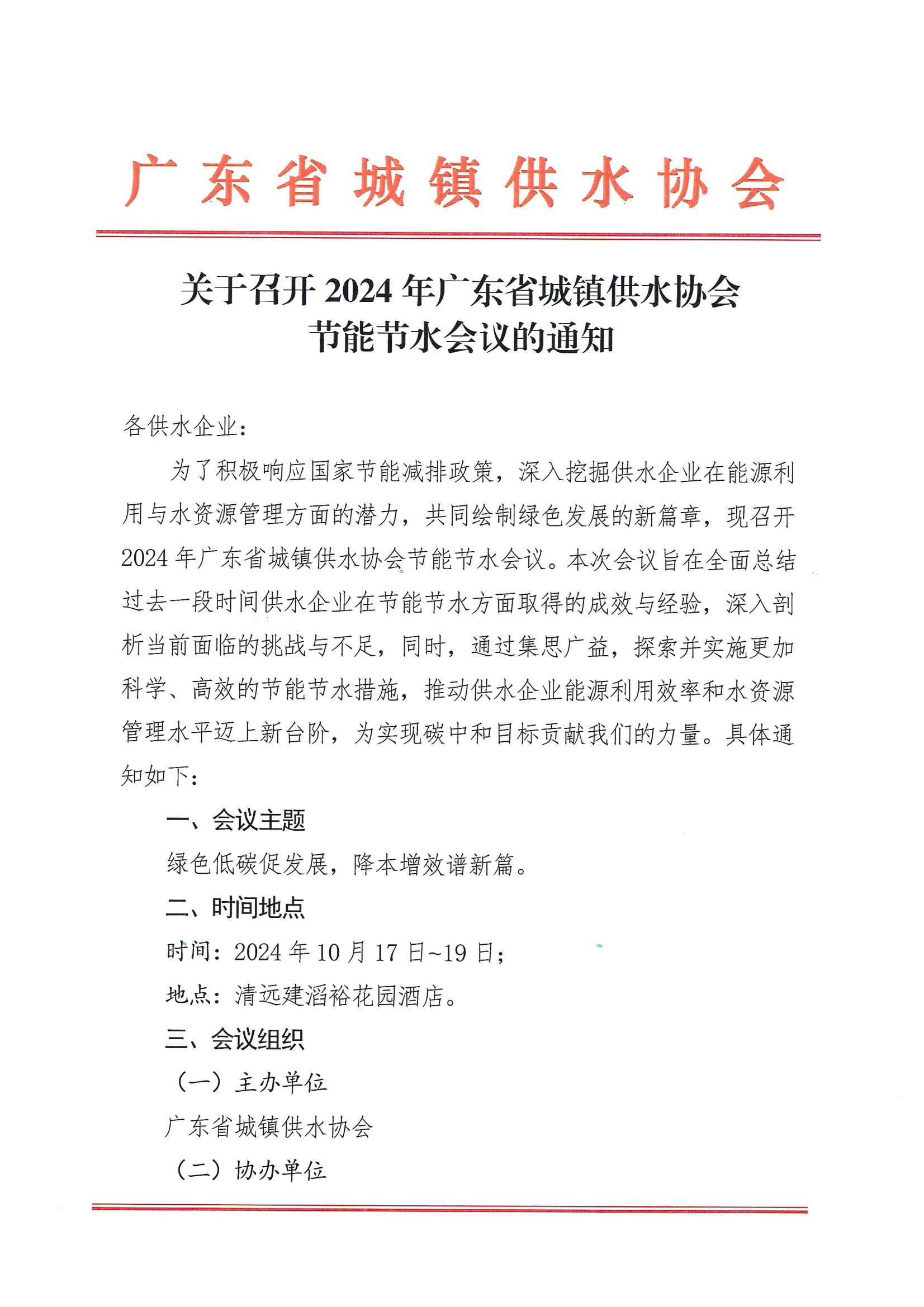 | 文件名称: | 关于召开2024年广东省城镇供水协会节能节水会议的通知 | ||