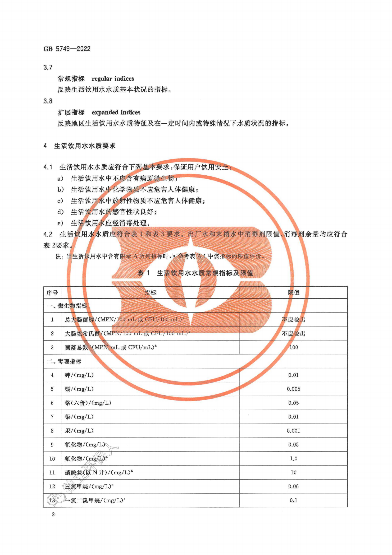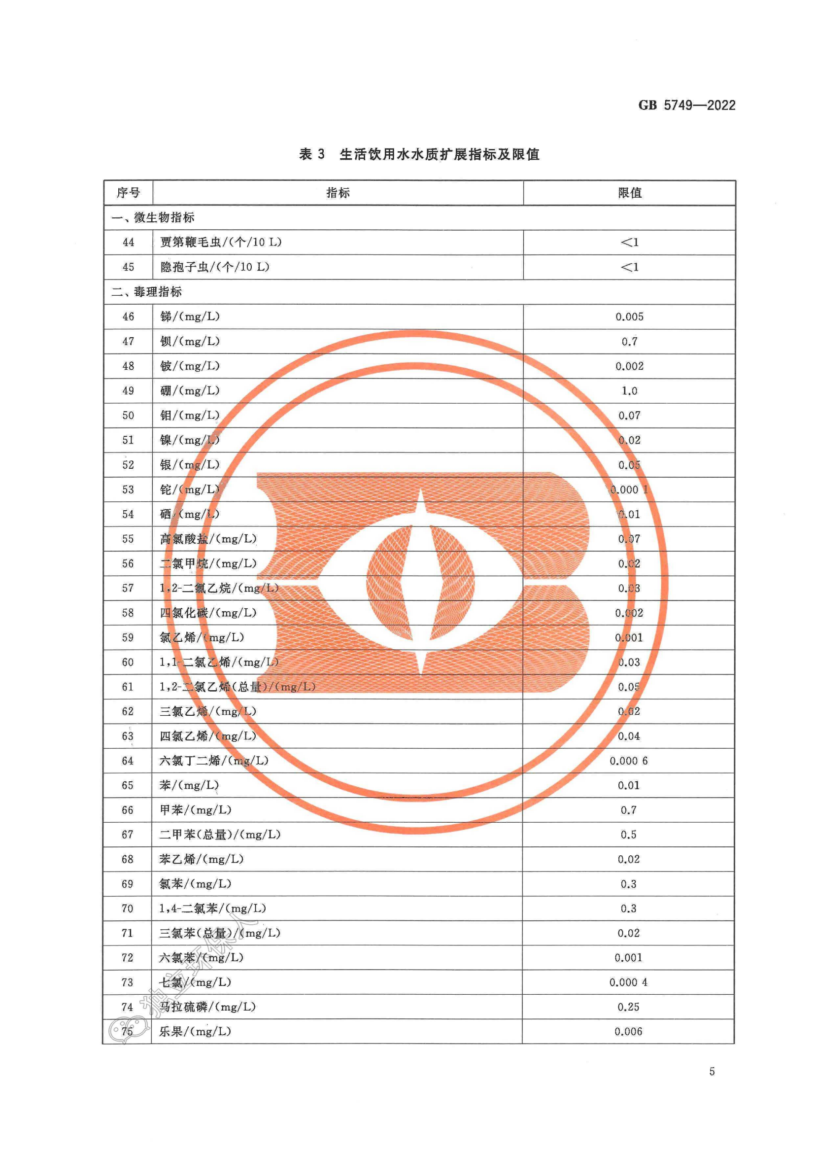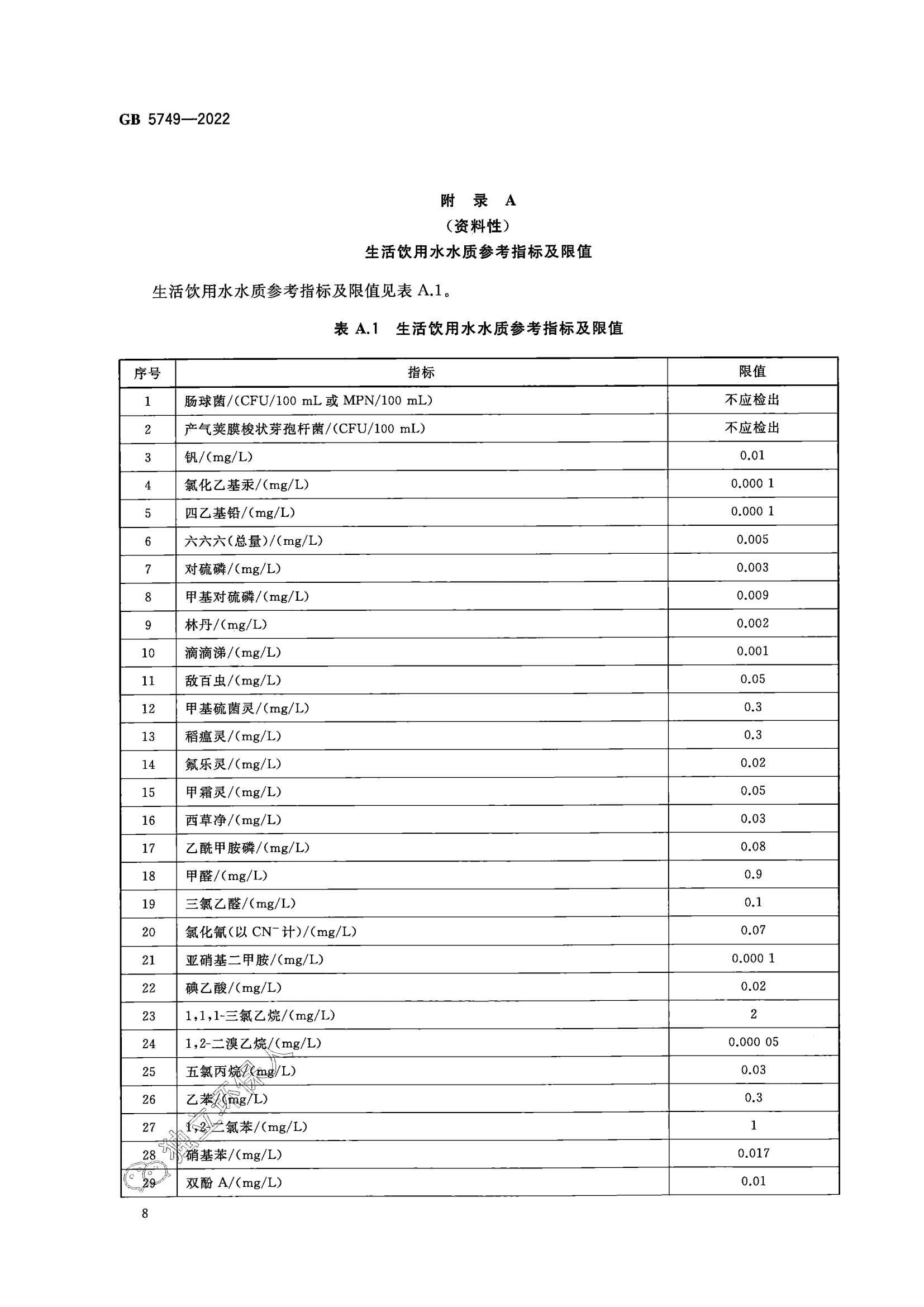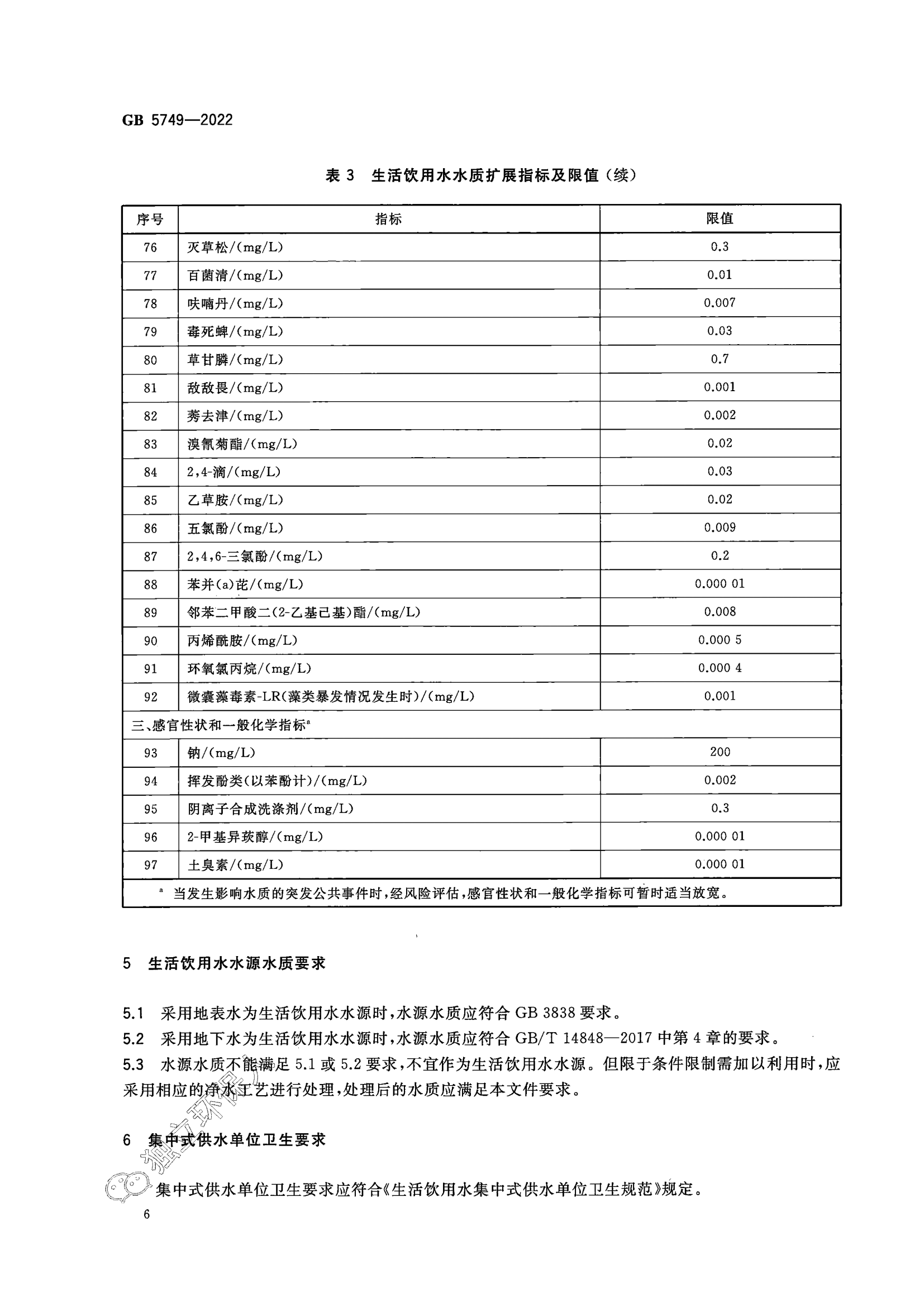 生活饮用水卫生标准(GB 5749-2022)