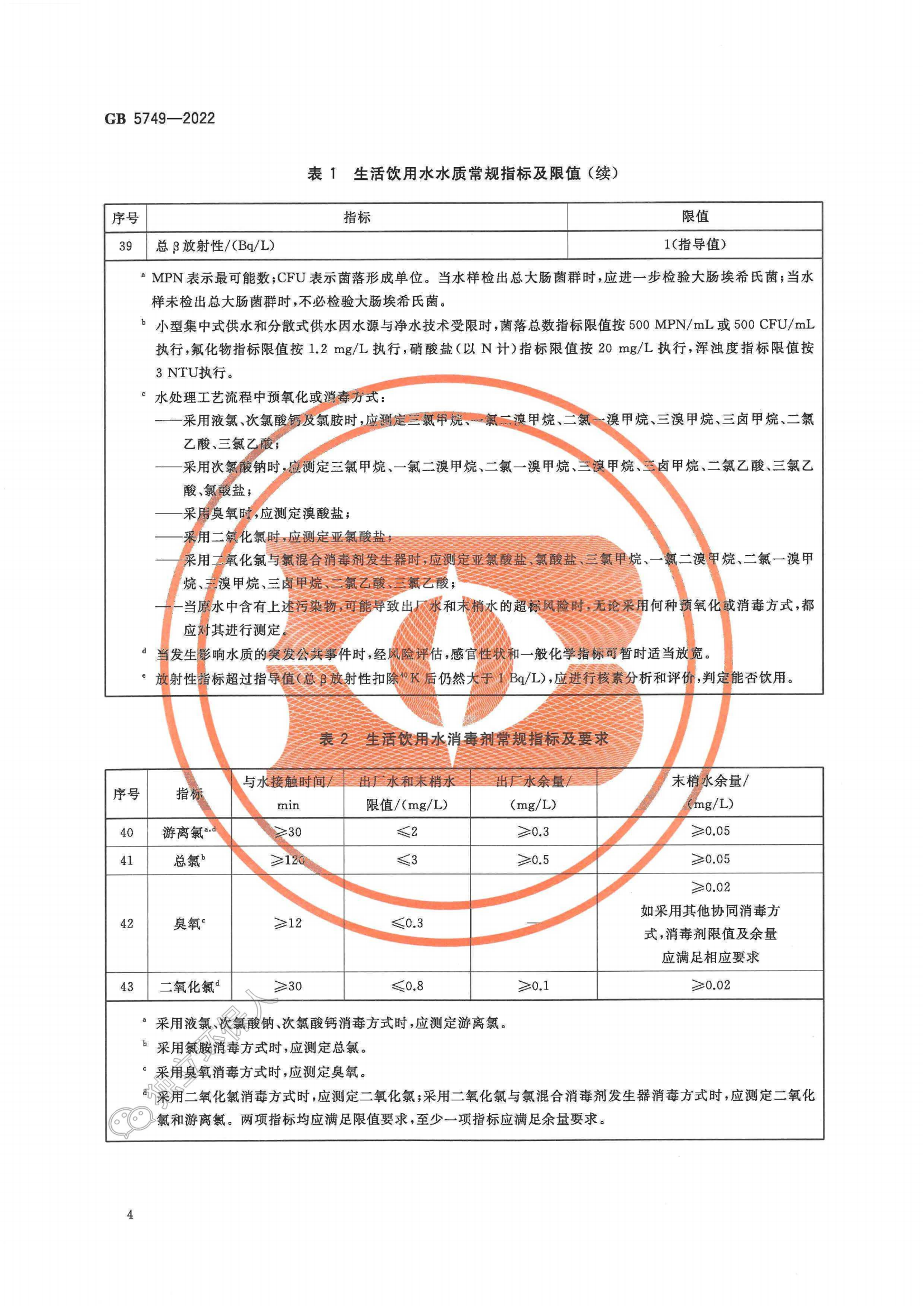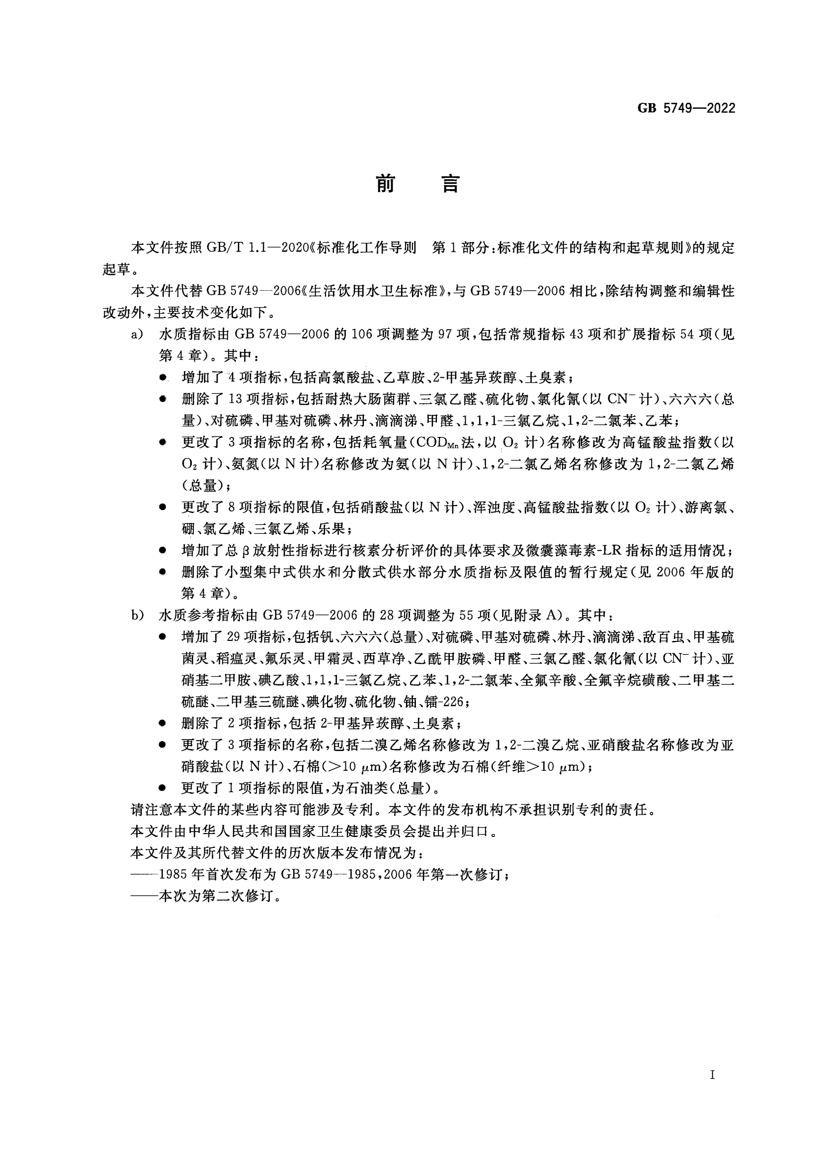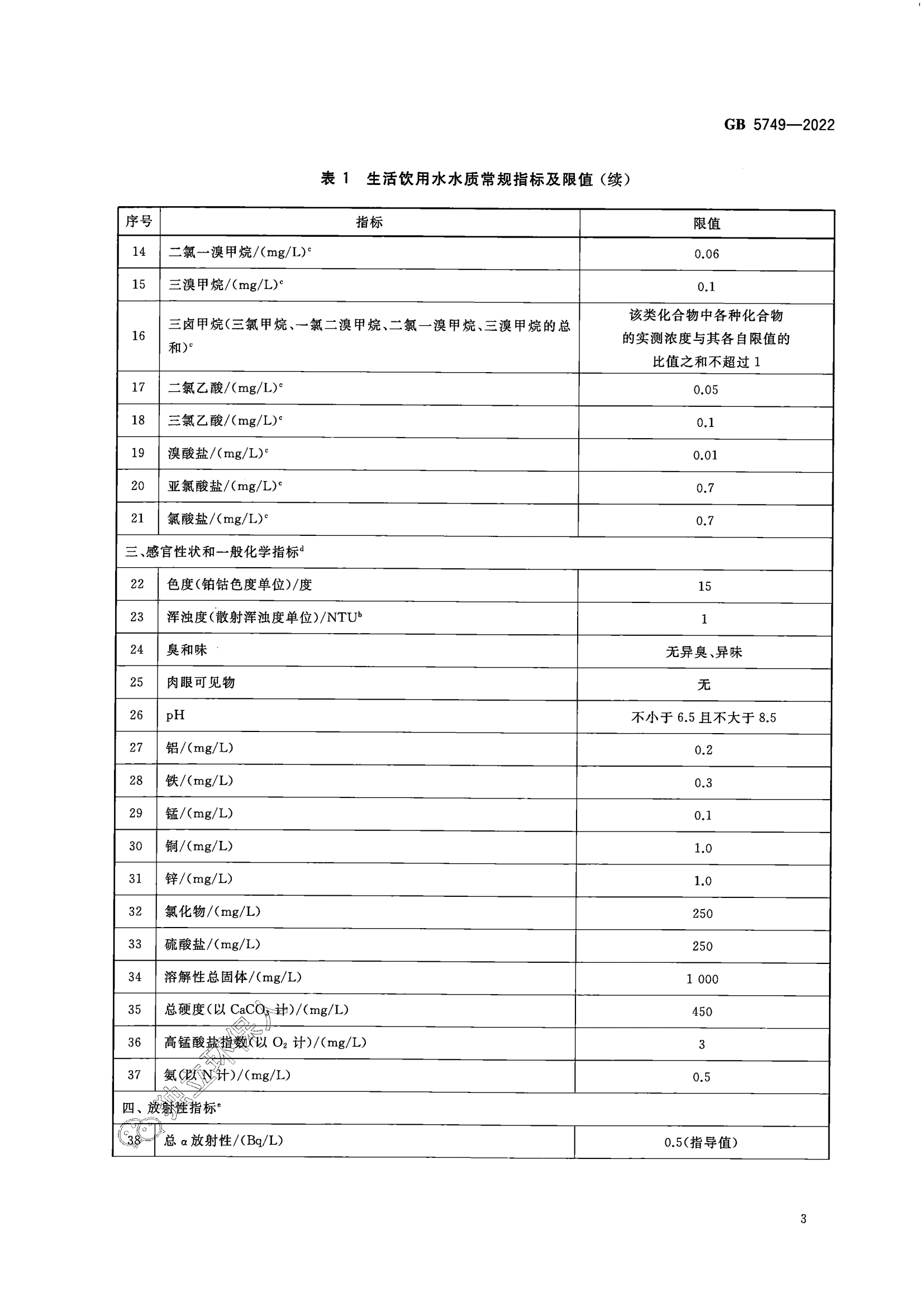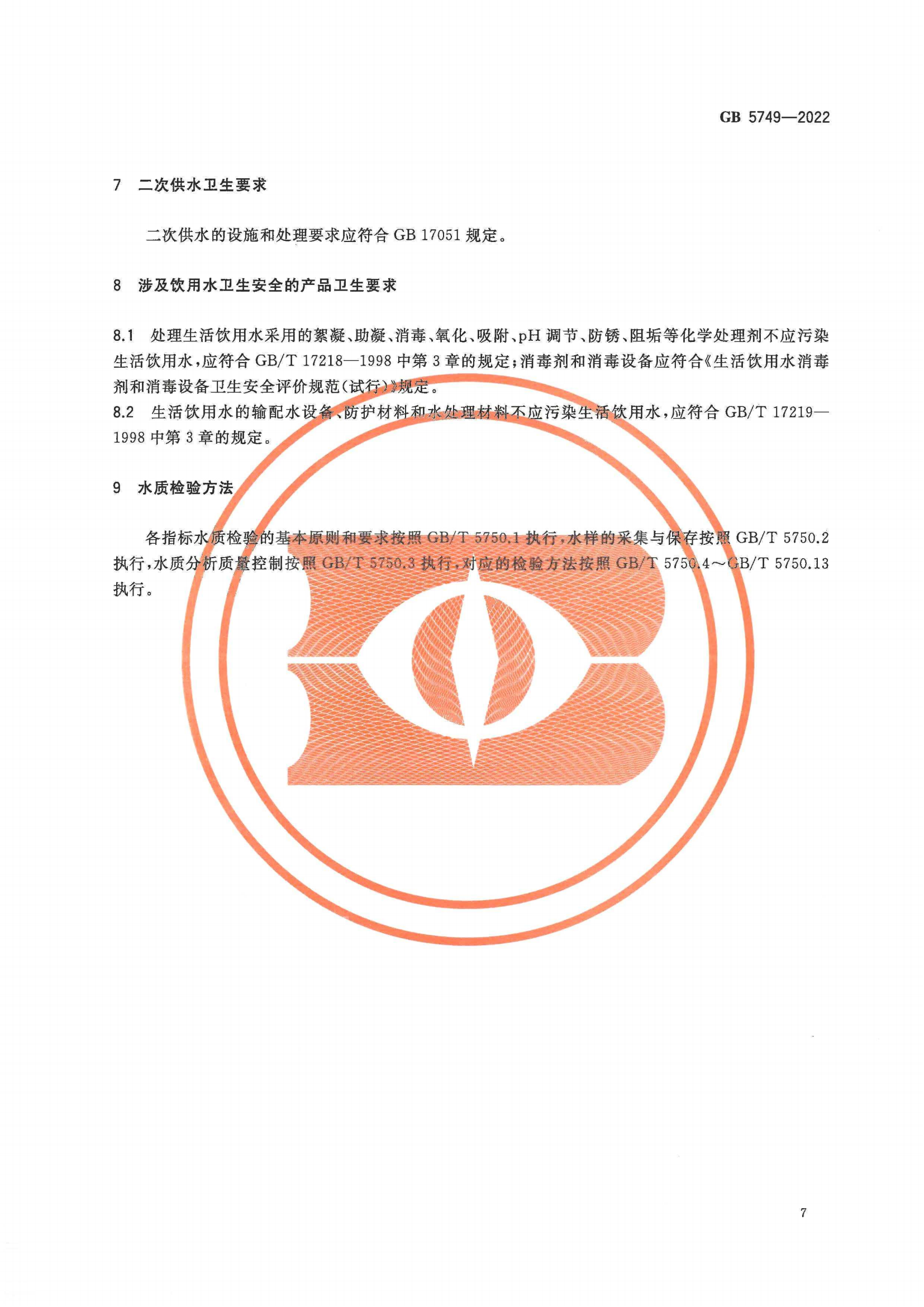 生活饮用水卫生标准(GB 5749-2022)