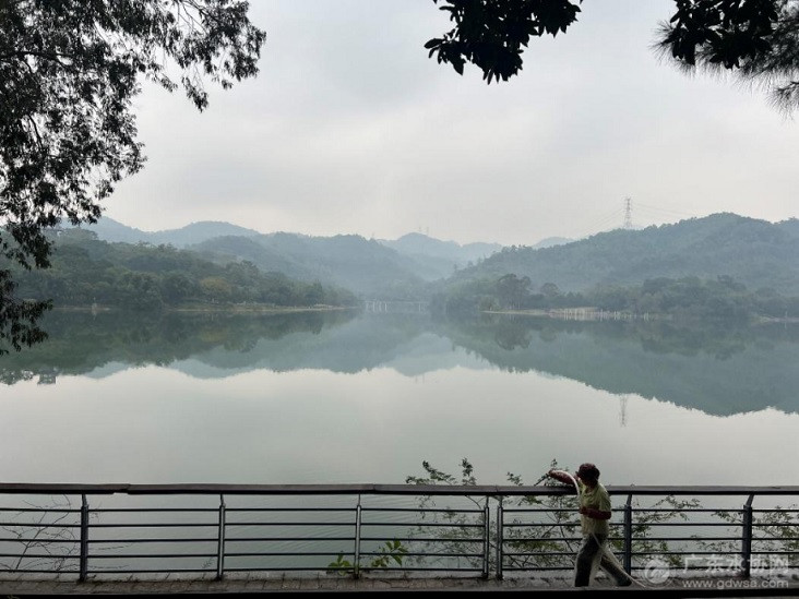 那天一早,天阴沉沉的,像还没醒透。七点钟,我们准时走到金钟湖入口,眼前的湖,已经浸在一片淡淡的雾气里。不是那种浓得化不开的大雾,而是像有人在空气里轻轻晕开了一层墨,把远山、近树、湖面都染成了一幅刚刚落笔的水墨画。