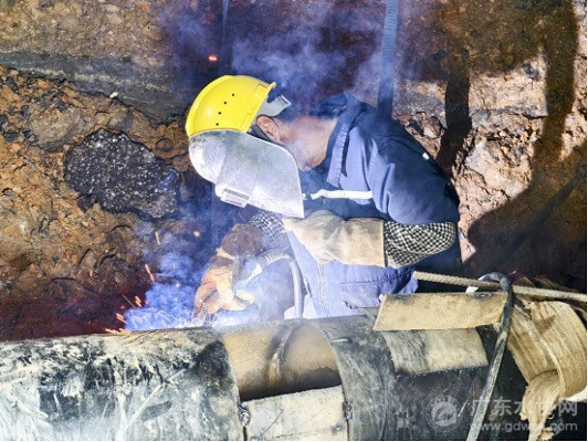 雨水砸得人睁不开眼,浑浊的积水漫过防水靴,抢修难度远超预期。防水胶圈是管道防漏止水的关键点,必须丝毫不差,哪怕只相差1毫米,都将导致二次爆漏。而眼下的防水胶圈竟与管口存在3毫米的差异!更棘手的是,适配于这一段管道的配件早已停产。“不管了!我们现场打磨吧!而且必须一次性成功!”技术骨干泡在泥水中反复打磨,雨水顺着防护面罩灌进衣领,双手被泥水泡得发皱发白。历经3小时7次调试,刺眼的探照灯照亮了最后一道工序——“特制”胶圈终于与管口严丝合缝。