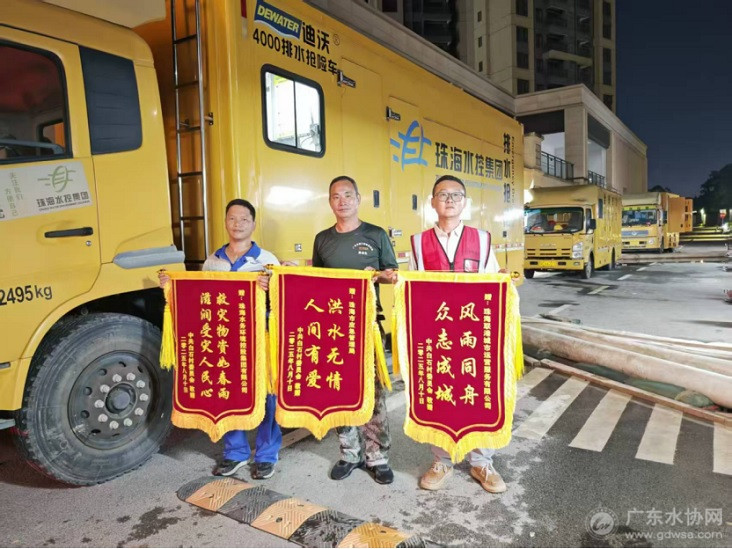 8月11日下午,珠海水控集团管网公司排涝抢险队圆满完成跨市支援惠州任务返珠。此次救援中,管网公司6人组成的抢险小队连续奋战117小时,抽排积水超20万吨,成功解除惠阳区山子顶路村庄及沿湖路小区地下车库的洪涝危机。为此,他们获得当地村委赠锦旗致谢,珠海市应急管理局专门举行迎接仪式表彰其突出贡献。