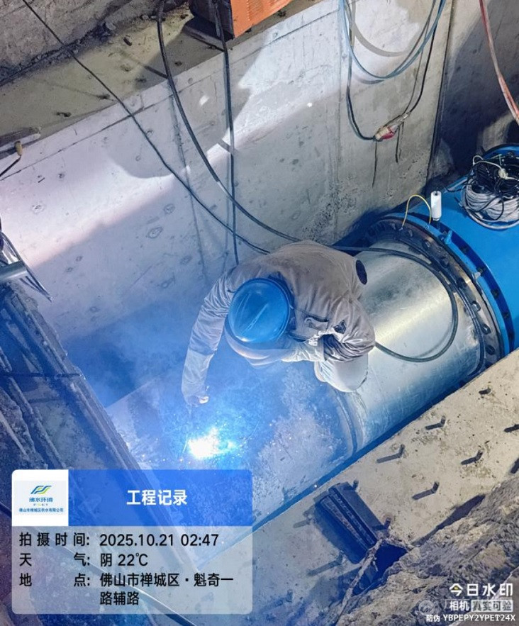 10月31日凌晨3时,经过连续5小时停水施工,禅城区城南片区供水管网监测设备安装工程--汾江南路DN600流量计安装工程停水接驳顺利完成,经管网测压平稳、水质检测合格后,较预计时间提前4小时恢复正常通水。据悉,为最大程度降低停水施工对市民用水的影响,佛水环境创新推行“错峰作业+高效协同”模式,深夜施工守护民生安宁。城南片区供水管网监测设备安装工程便是该模式的典型案例,魁奇路DN800流量计安装工程于10月20日深夜22时启动,经过连续7小时深夜施工作业,于21日凌晨5点完成全流程工作,恢复正常供水。