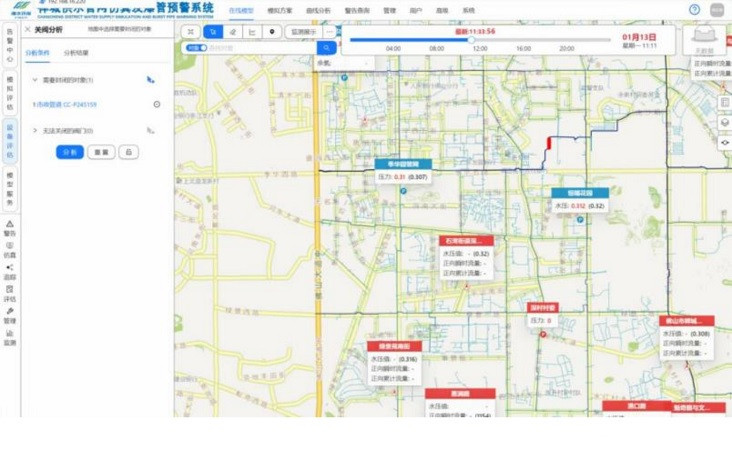针对禅城区老旧管网占比高、人口密集、爆管影响范围大等痛点,佛水环境旗下禅城供水公司早在2024年下半年率先启动供水管网仿真及爆管预警系统建设,选定祖庙、城南片区为示范区。该系统拥有“高精度、快响应、全闭环”等核心优势,通过整合GIS、SCADA等多系统数据,快速触发预警并推送提醒短信,一键生成关阀方案,将传统人工处置流程从数小时缩短至几分钟,为管网安全装上“智慧大脑”。