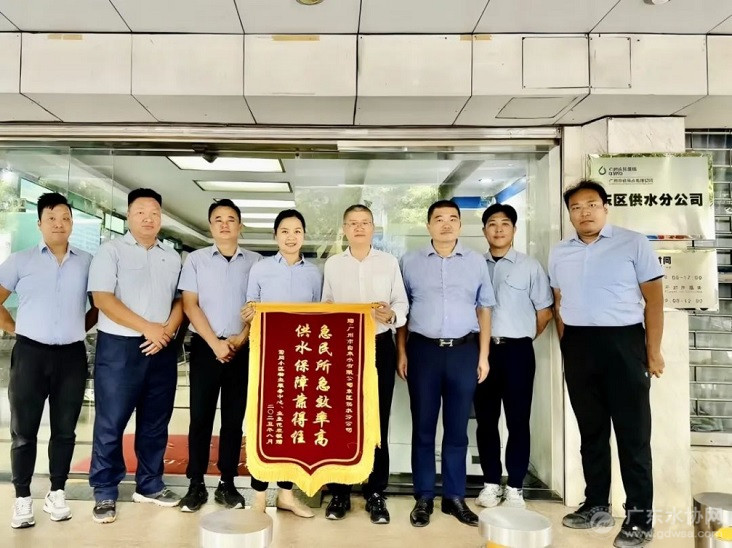 小区物业公司携业主代表专程向广州水投自来水公司东区供水分公司送来锦旗