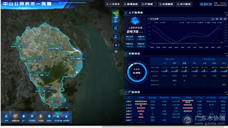 中山公用水务以“供水一张图”平台为核心,推动咸潮防控向智能化、精准化升级。该平台整合潮汐、水质、气象、水文等多源数据,运用深度学习模型,能够较为准确地预测咸潮发生概率、影响范围和持续时间。