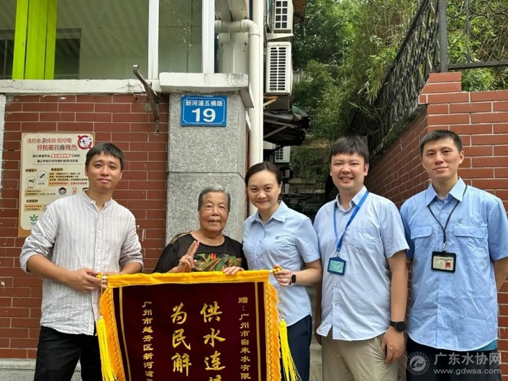 广州市越秀区新河浦五横路某楼栋住户黄阿姨向广州水投自来水公司送来锦旗