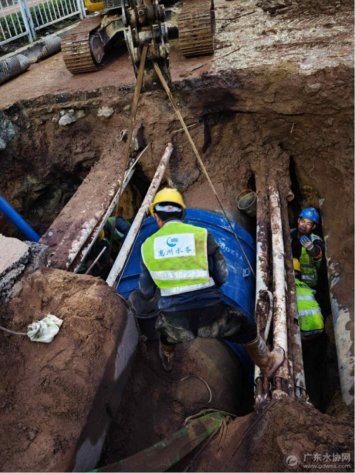 “这是管道‘心脏’区域的精细手术,不能有毫厘之差。”惠州水司迅速协调仲恺交通事务中心、仲恺交通路政股、惠环交警中队、燃气、电力、通信等部门,取得施工许可与协同保障后,制定了“不停水、微创开挖、快速夹堵”的抢修方案。