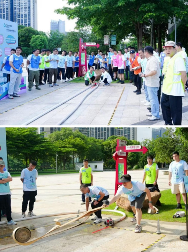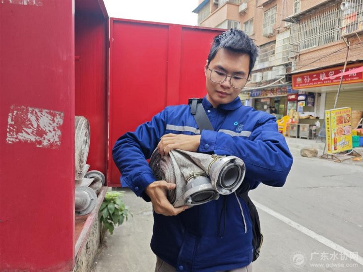 广州自来水职工李嘉兴接驳消防水带