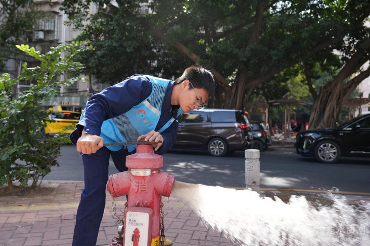广州自来水职工梁康开启消火栓