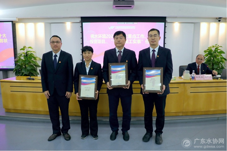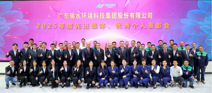 佛水环境党委班子与2025年度先进集体代表、优秀个人合影