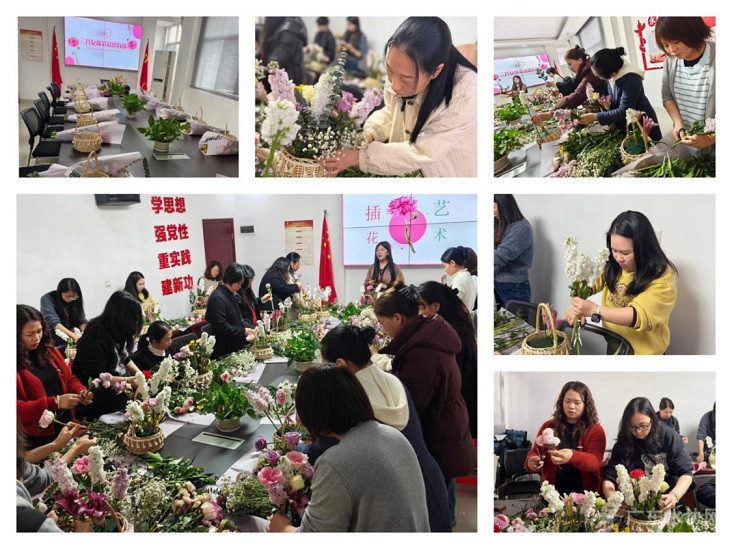 活动现场花香四溢、温馨雅致。在花艺老师的耐心指导下,大家兴致盎然地修剪枝叶、搭配色彩、设计造型,将一朵朵鲜花巧妙搭配,创作成各具特色、生机盎然的花艺作品,女职工们沉浸在动手创作的乐趣中,相互交流分享、拍照留念,欢声笑语不断,充分展现了积极向上、自信优雅的精神风貌。