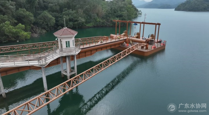 与此同时,在长江水库,一座全新的“智慧平台”已悄然落位——中山市首座浮船式取水泵站。这座取水规模达30万立方米/日的浮动设施,能够像船一样随水库水位智能升降,彻底改变了传统固定式泵站需要穿越堤坝的建设模式。这一创新设计,大幅降低了施工周期和生态影响,实现了“灵活适配+稳定高效”的双重突破。