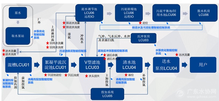 它不是一个虚无缥缈的概念,而是一套实实在在的“7+1”智慧控制体系。这个体系覆盖了从原水进入水厂到清水流出水厂的每一个关键环节: