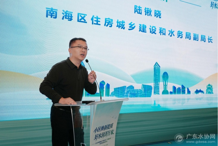 南海区住房城乡建设和水务局副局长陆锹晓上台致辞,他回顾了南海区治水兴水、保障民生用水的扎实成效,指出南海供水发展已从 “喝得上”向“喝得好”跨越,未来将重点筑牢全链条供水安全防线、推动供水品质向优质跃升、倡导全民爱水护水节水新风尚,呼吁全社会共同守护珍贵的水资源。