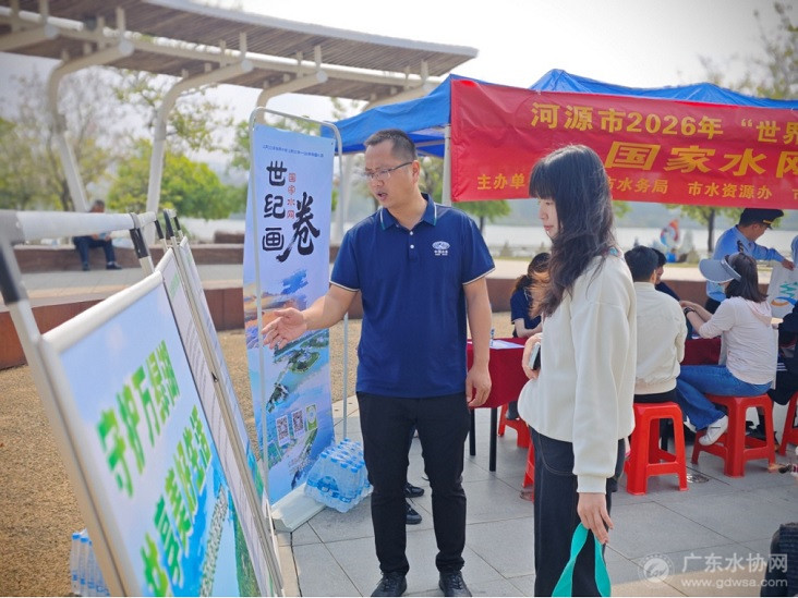 2026年3月22日是第三十四届“世界水日”,3月22—28日是第三十九届“中国水周”。为积极响应国家节水行动号召,推动节水型城市建设,增强公众水资源危机意识和节水意识,河源市水务局、河源市生态环境局、河源市水资源办、河源市水业集团携手,于3月22日上午在东江湾公园开展以“国家水网 世纪画卷”为主题的宣传活动,河源市水业集团始终坚持以实际行动践行“以水为本,达善社会”的企业核心价值观,守护河源碧水清波。