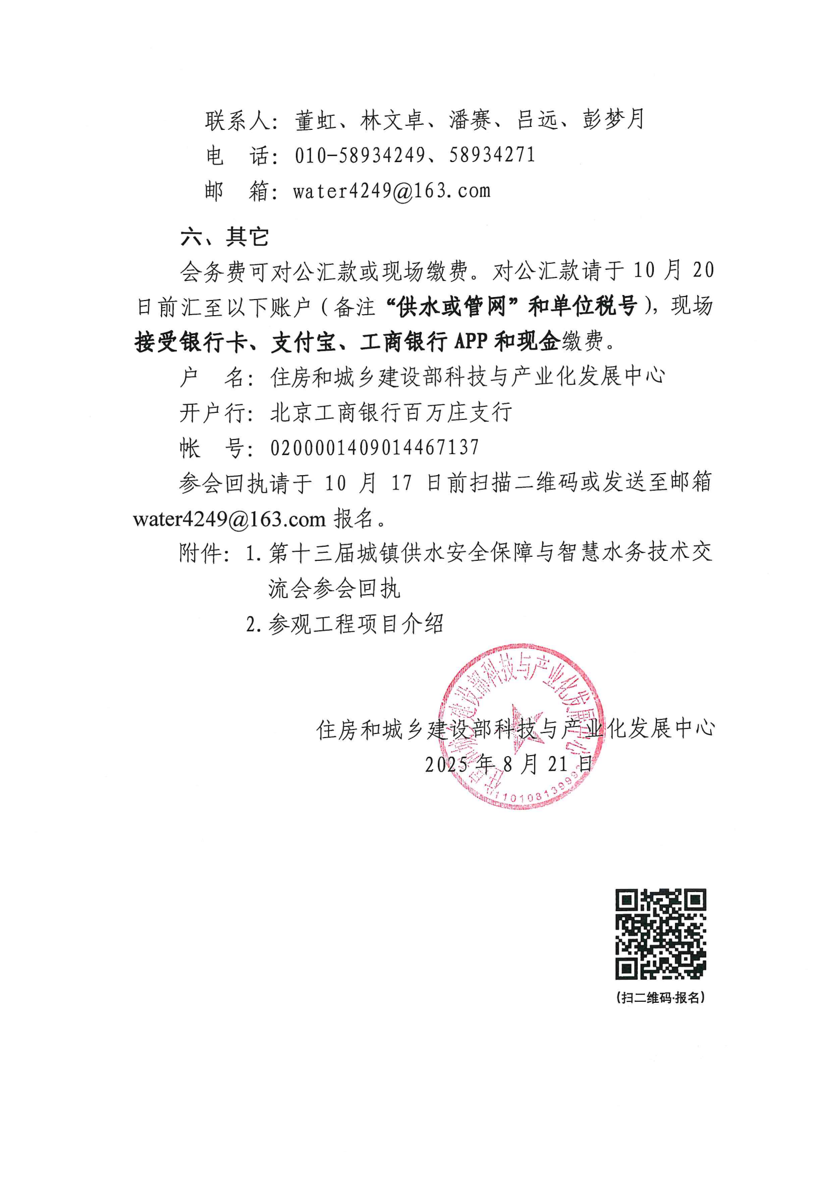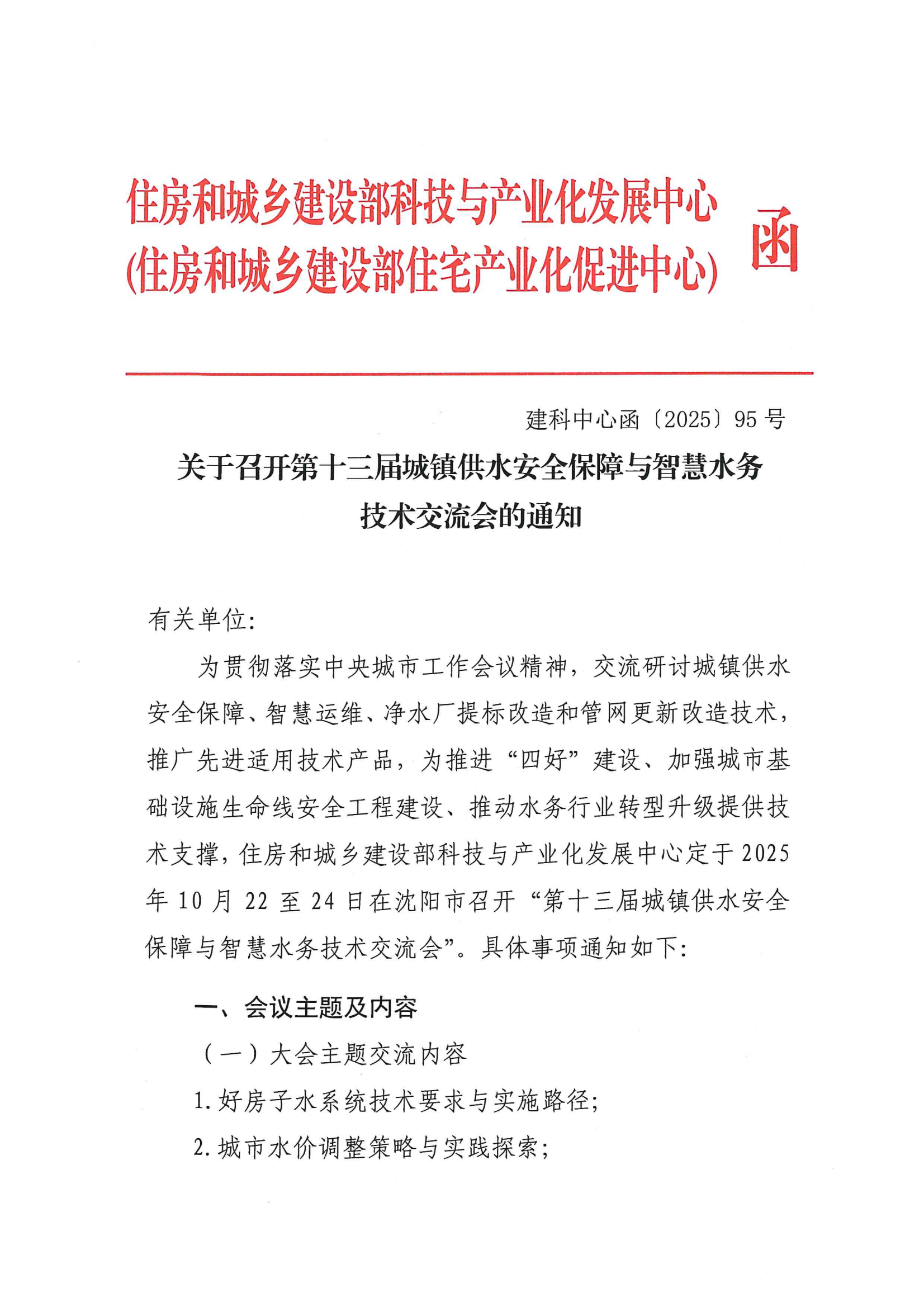 关于召开第十三届城镇供水安全保障与智慧水务技术交流会的通知