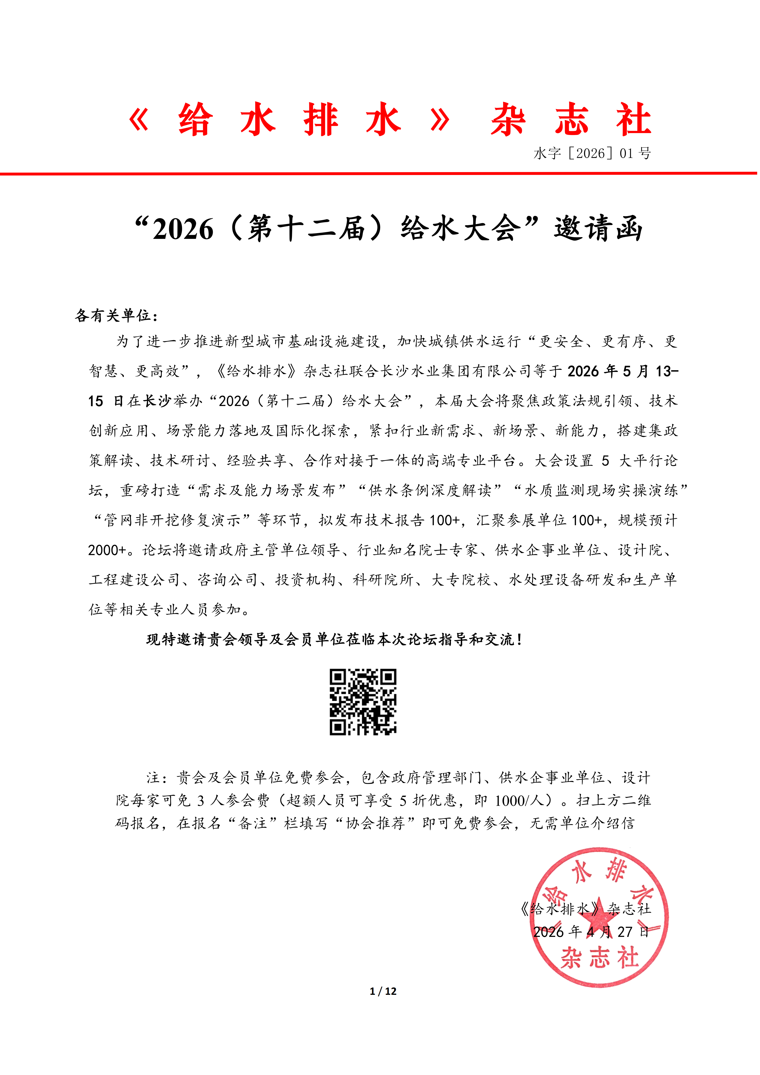 “2026(第十二届)给水大会”邀请函