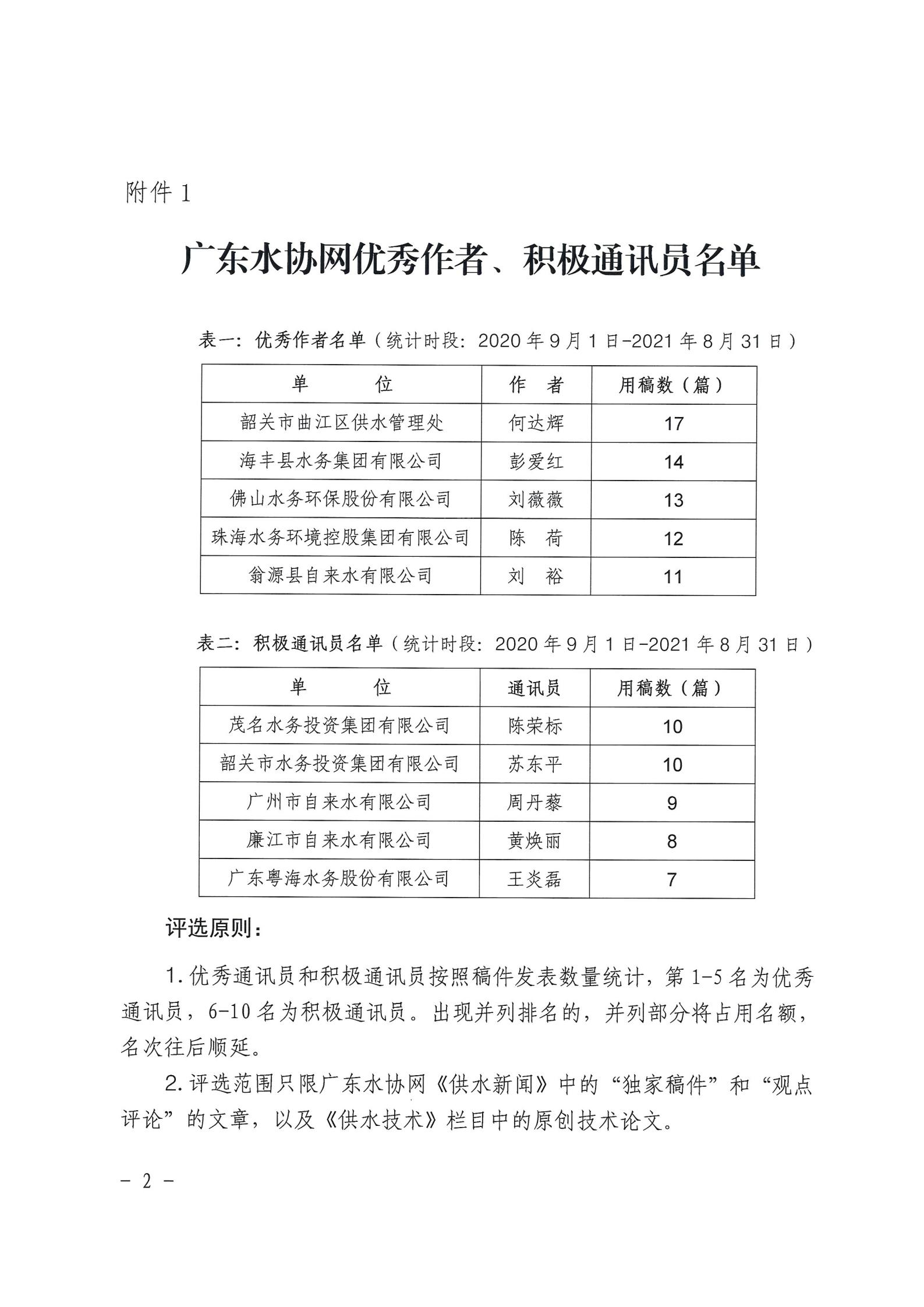 | 文件名称: | 广东水协网2020-2021年度宣传积极单位、优秀作者和积极通讯员获奖名单公布 | ||