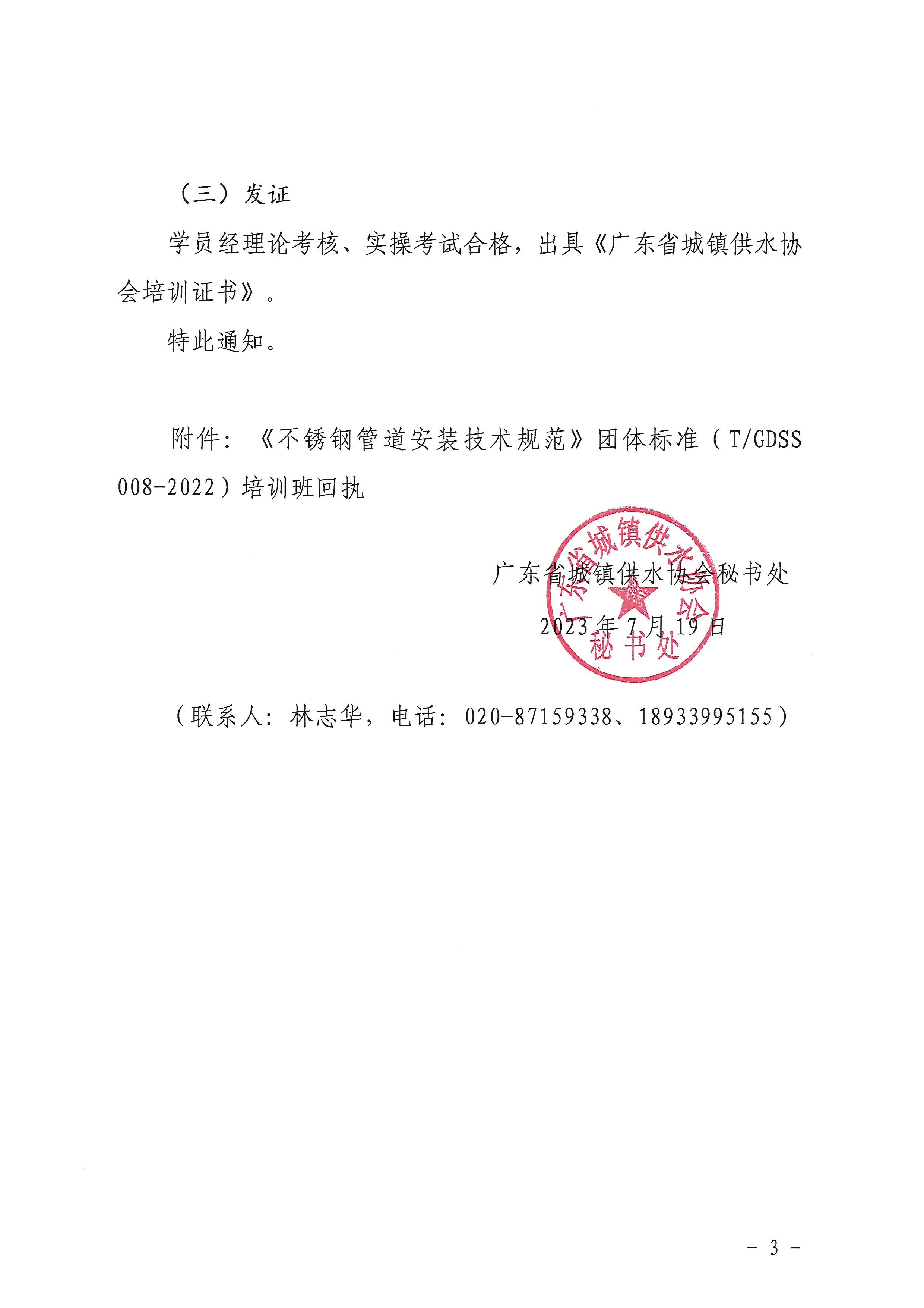 《不锈钢管道安装技术规范》团体标准(T/GDSS 008-2022)培训班回执