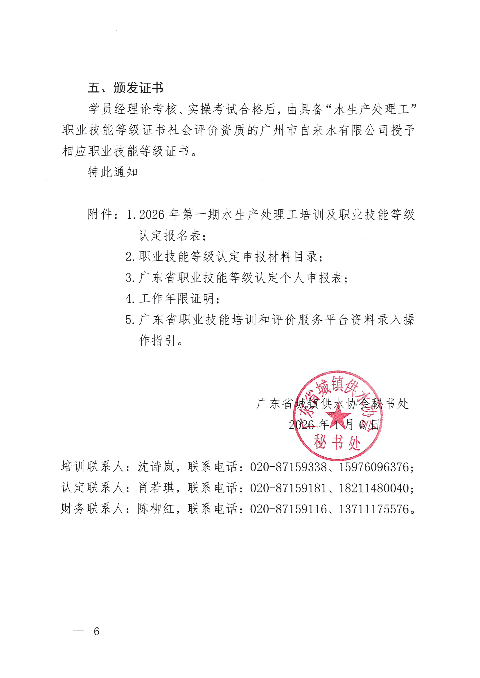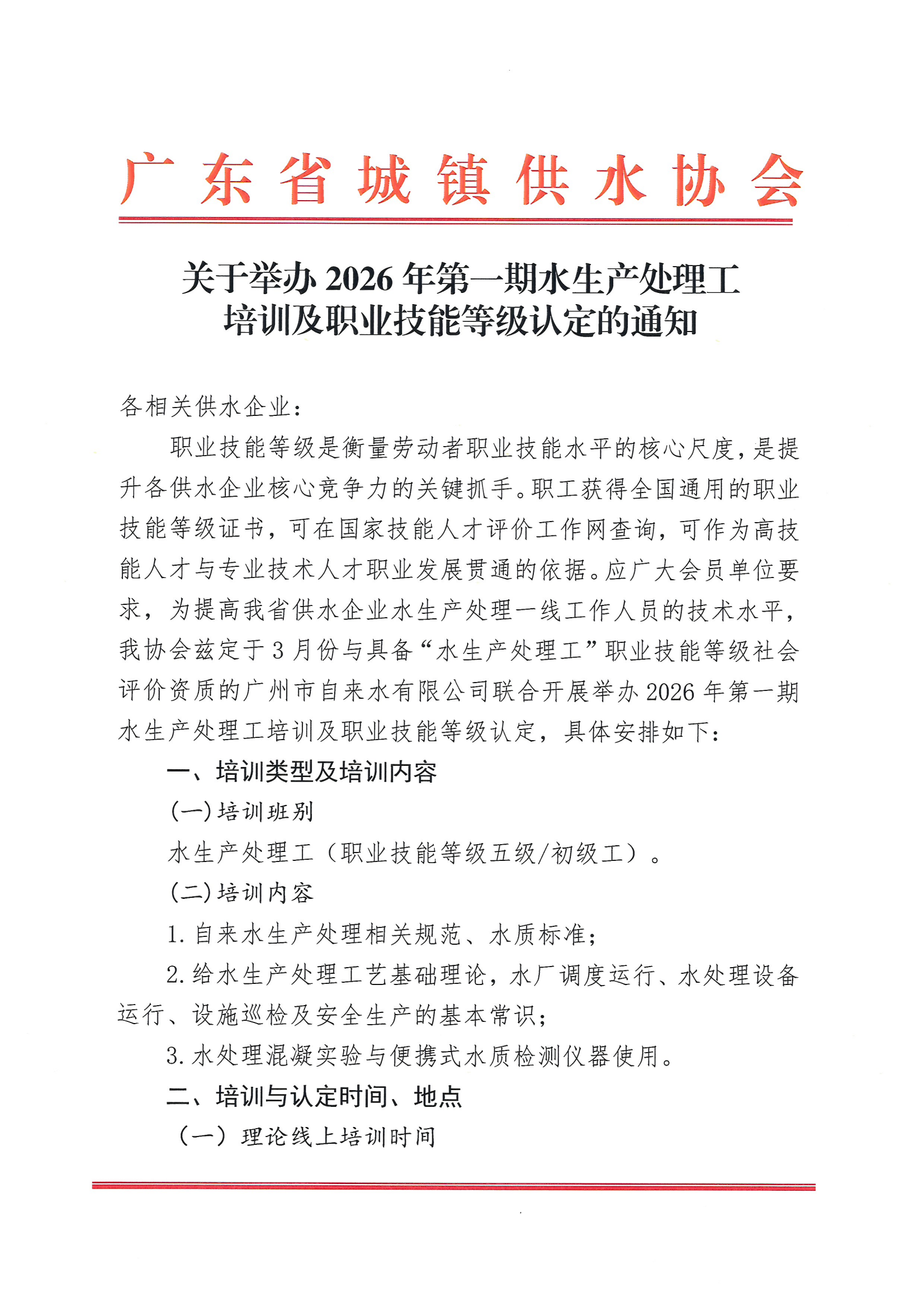| 文件名称: | 关于举办2026年第一期水生产处理工培训及职业技能等级认定的通知 | ||