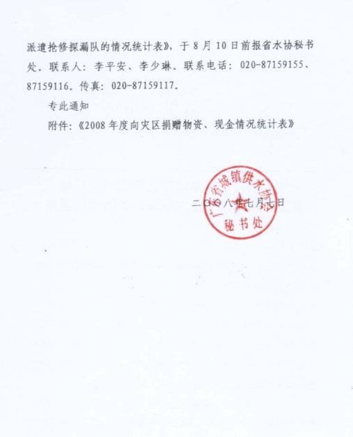| 文件名称: | 关于统计会员单位在救灾活动中捐赠各类财务和派遣抢修探漏队情况的通知 | ||